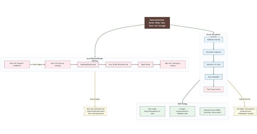 - Microplastic Invasion: 2025 University of Helsinki research found nylon particles in 68% of canine stool samples, with levels 4x higher in Nylabone users. These plastics adsorb environmental toxins like PCBs, creating “toxic trojan horses” in the gut.