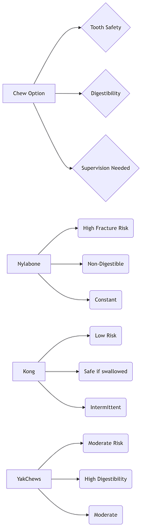 | Chew Type | Digestibility | Calories/inch | Risk Factors |